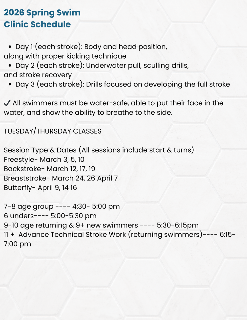 CLINICS, LESSONS, PROGRAMS