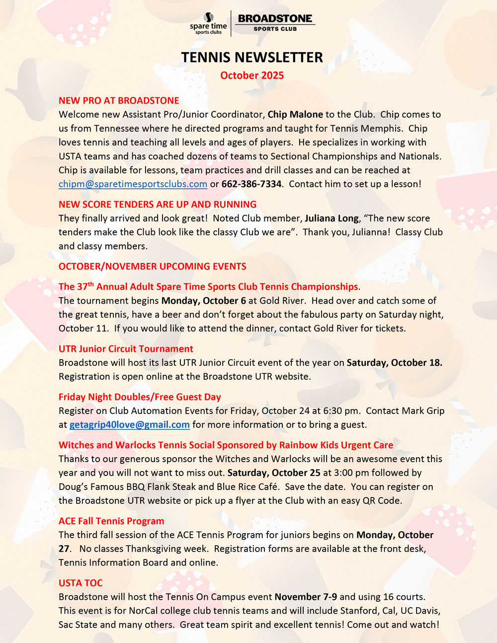 PROGRAMS | EVENTS | SOCIALS Click to download details & registration form Click to download details & registration form Click to download Event FAQs WEEKLY DRILLS & DROP-INS RECOGNITION & EVENT PHOTOS TENNIS STAFF – BIOS & CONTACT INFORMATION Elevate Your Fitness Journey Today Contact Us
