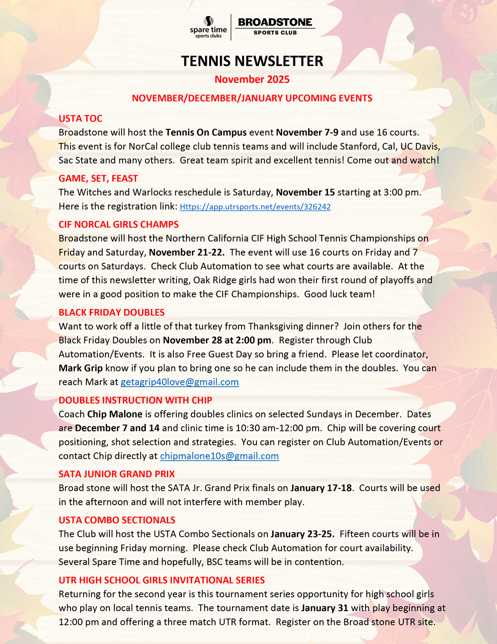 PROGRAMS | EVENTS | SOCIALS Click to download details & registration form Click to download details & registration form WEEKLY DRILLS & DROP-INS RECOGNITION & EVENT PHOTOS TENNIS STAFF – BIOS & CONTACT INFORMATION Elevate Your Fitness Journey Today Contact Us