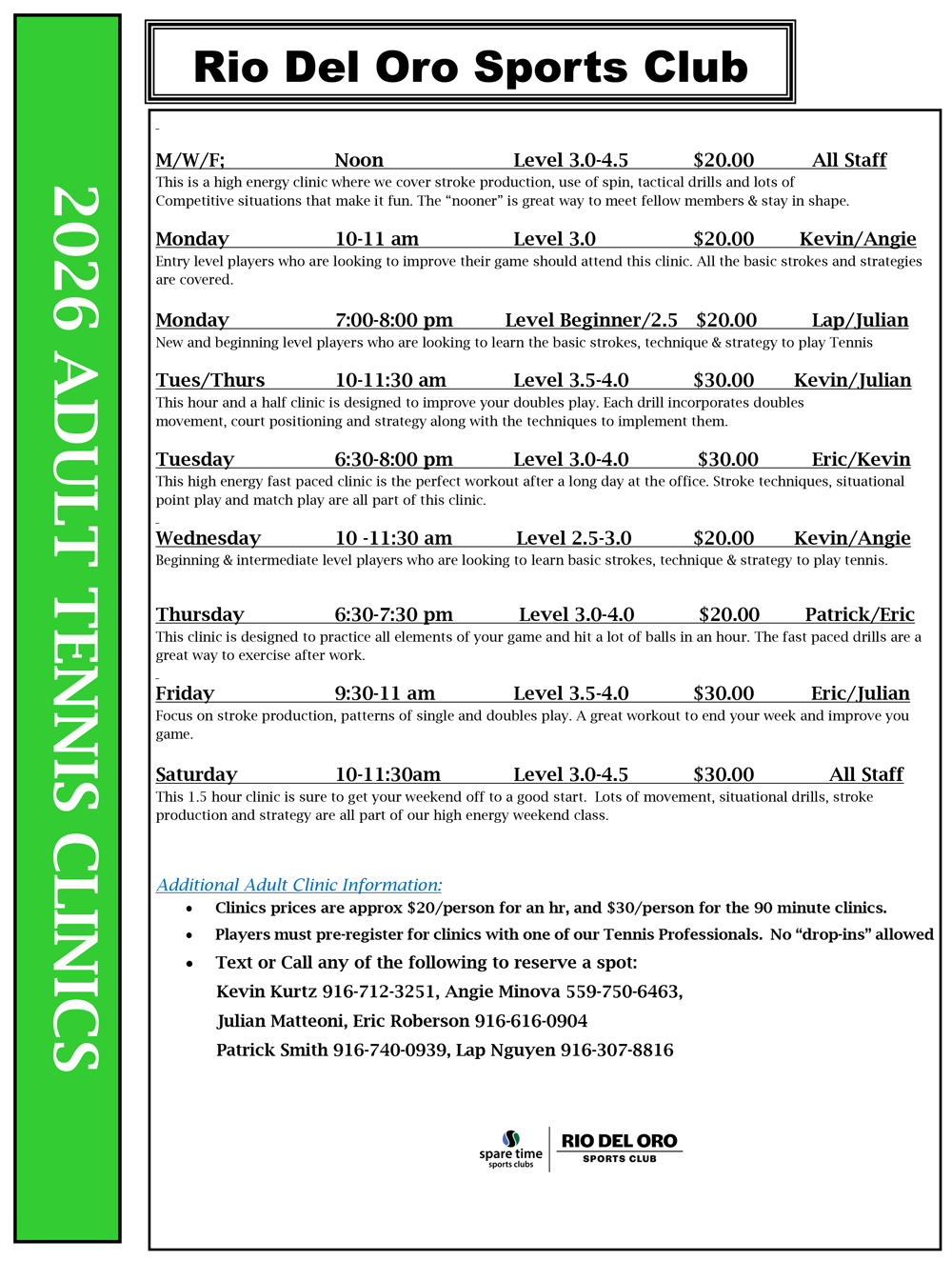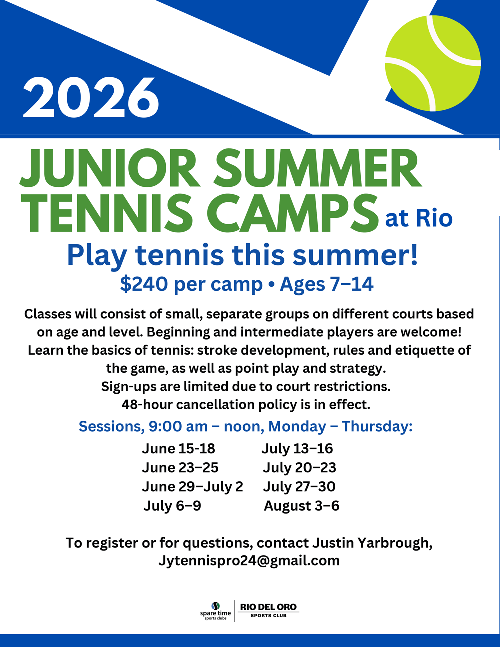 Click to download Rio Junior Tennis Brochure winter-spring 2026 Click to Download Registration Form Elevate Your Fitness Journey Today Contact Us