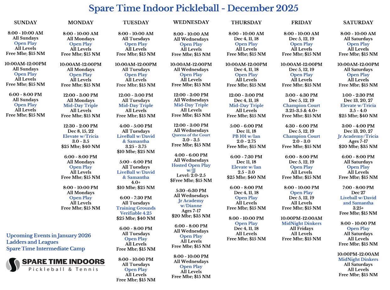 Spare Time Indoors offers the area’s most extensive pickleball programs and activities.